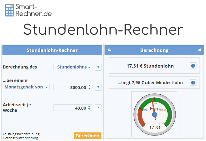 Ihr Monatsgehalt bzw. Jahresgehalt anhand der Eingabe Ihres Stundenlohns ermitteln wollen.