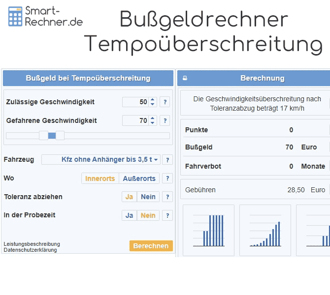 Mit dem Bußgeldrechner können Sie die Konsequenzen einer Geschwindigkeitsüberschreitung berechnen. Je nachdem, ob Sie