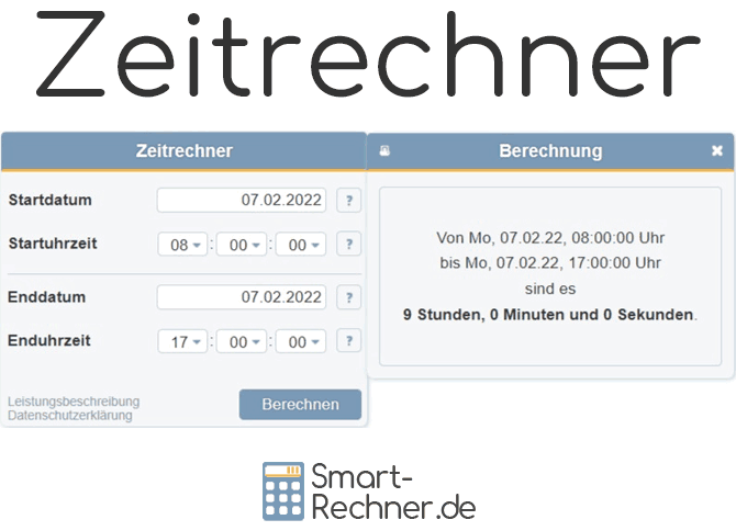 Der Zeitrechner bzw. Uhrzeitrechner berechnet die Zeit zwischen zwei Zeitpunkten, also zwischen zwei Uhrzeiten oder auch für längere Zeiträume